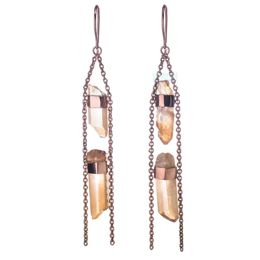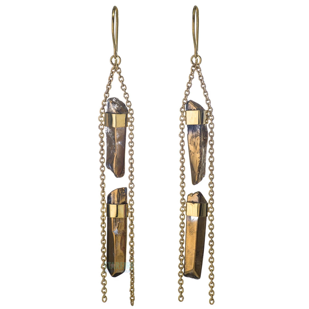 Two gorgeous stones dangling from chains give the “2 Chainz” earrings a free and flowing look. These are perfect to be worn as traditional earrings, or through eyelets.