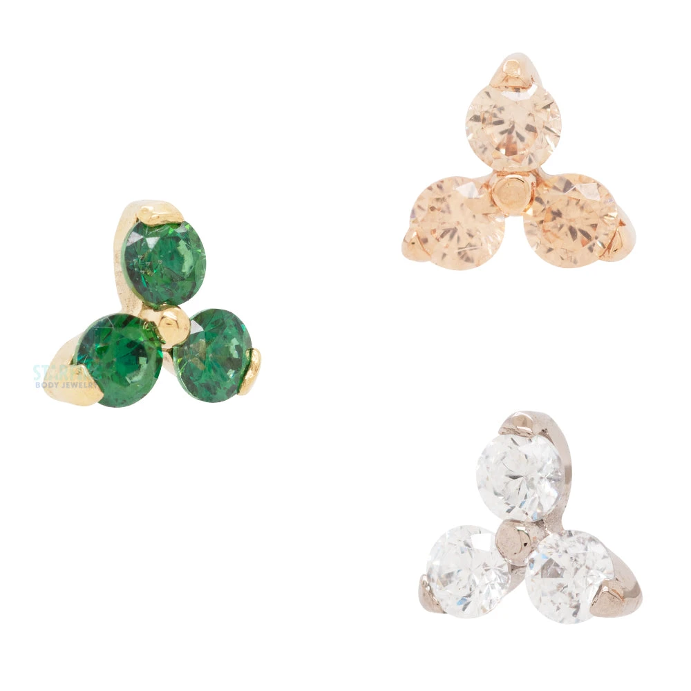 - (3) 2mm Brilliant-Cut Round Faceted Gemstones in Prong’s threaded end