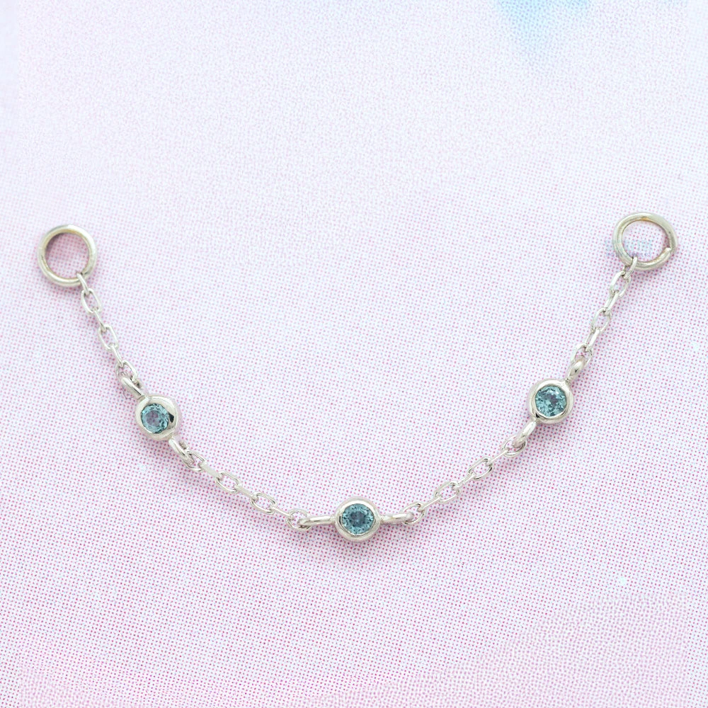 This 3 bezel chain attaches from different pieces of jewelry to create a fun and stylish aesthetic.