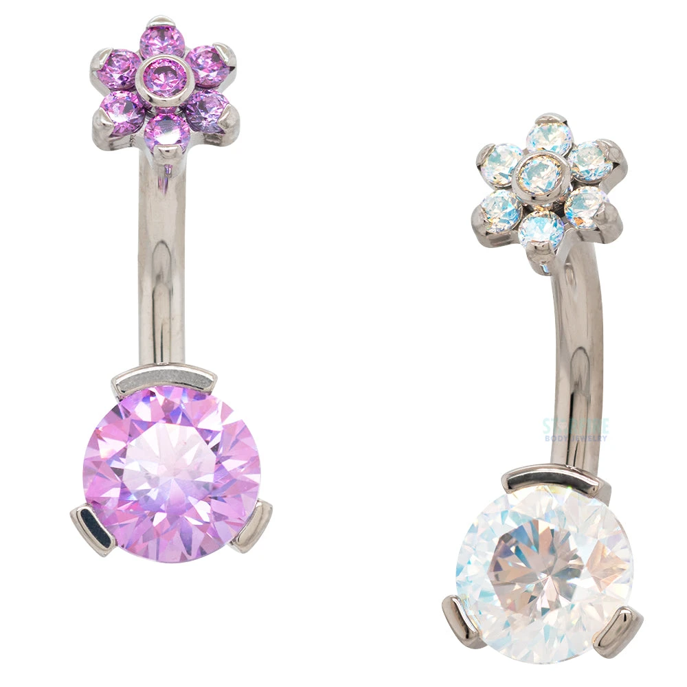 Our top selling navel curve in studio. Prong-set faceted gems that sparkle brilliantly.