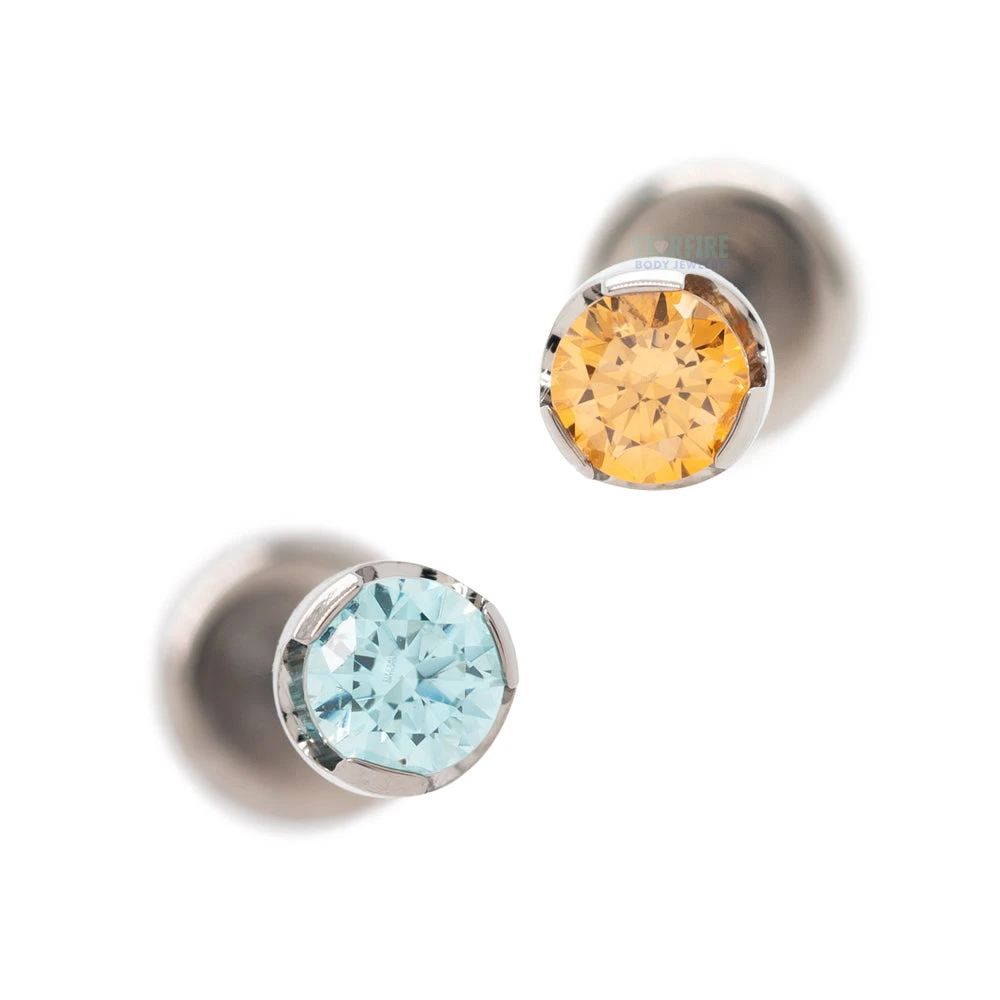- threaded end with (1) 3mm Brilliant-Cut Round Faceted Gemstone in Prong’s