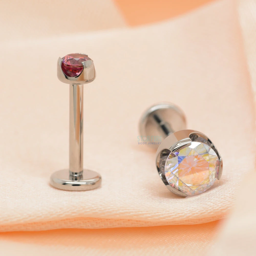 - Material(s): ASTM F-138 certified implant grade stainless steel, ASTM F-136 certified implant grade titanium, synthetic gemstones