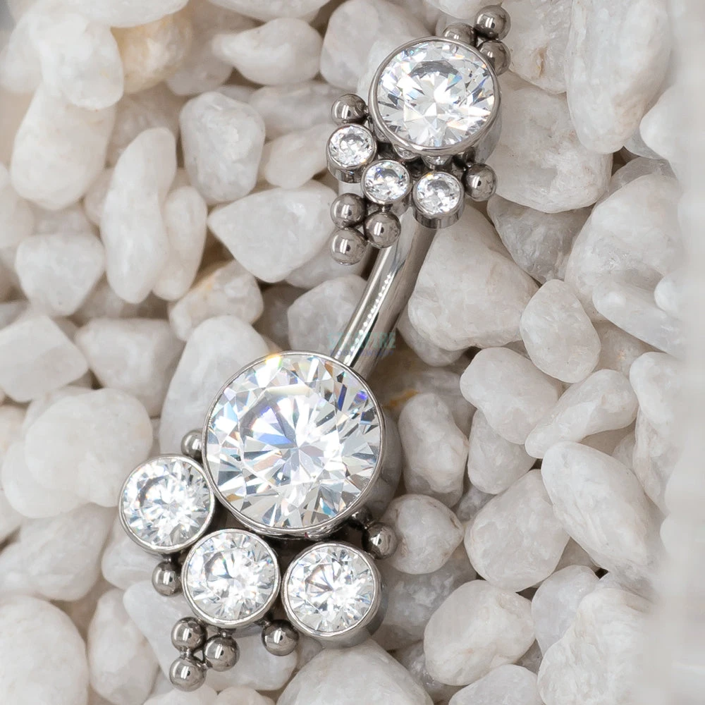 - 6mm fixed bottom Gem & (3) 3mm Gems with bead accents with 4mm & (3) 1.5mm Gems with bead accents threaded top