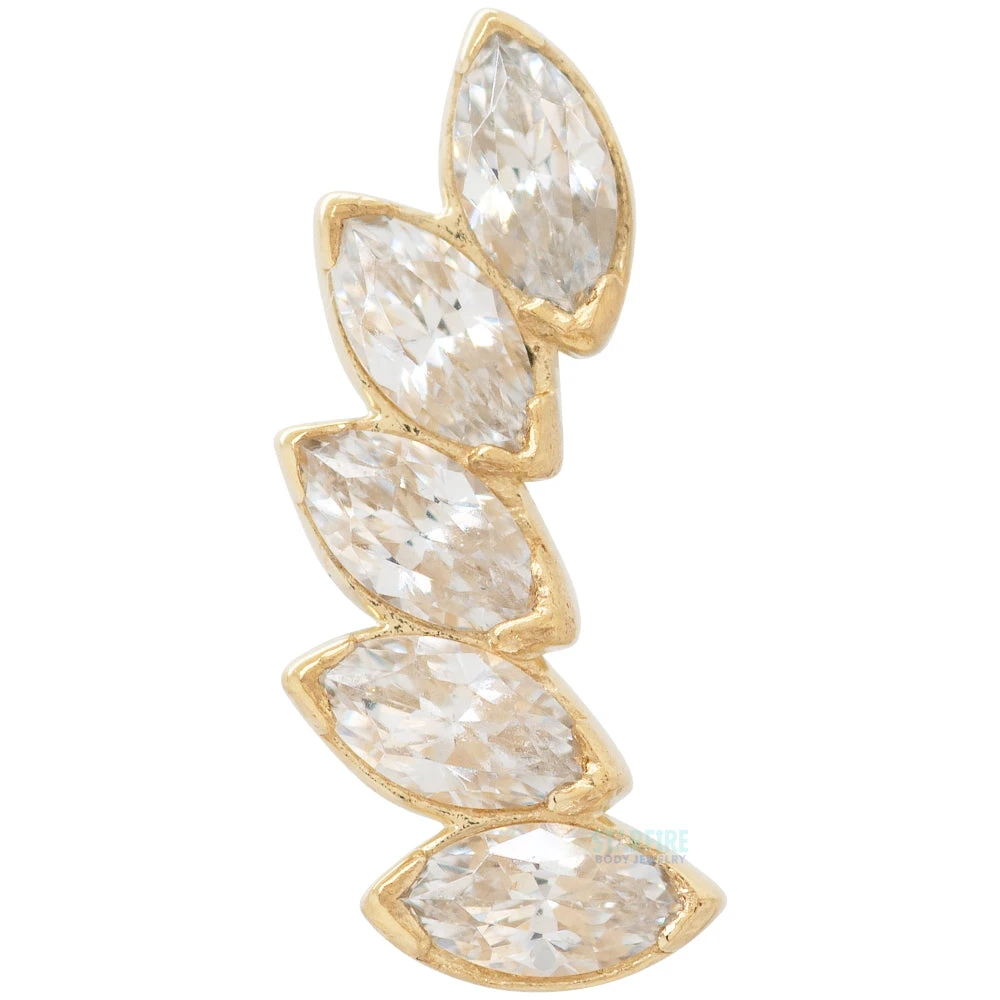 - 10mm x 4mm threaded end with (5) 3mm x 1.5mm Marquise-Cut Brilliant-Cut Faceted Gemstones in low profile Prong’s