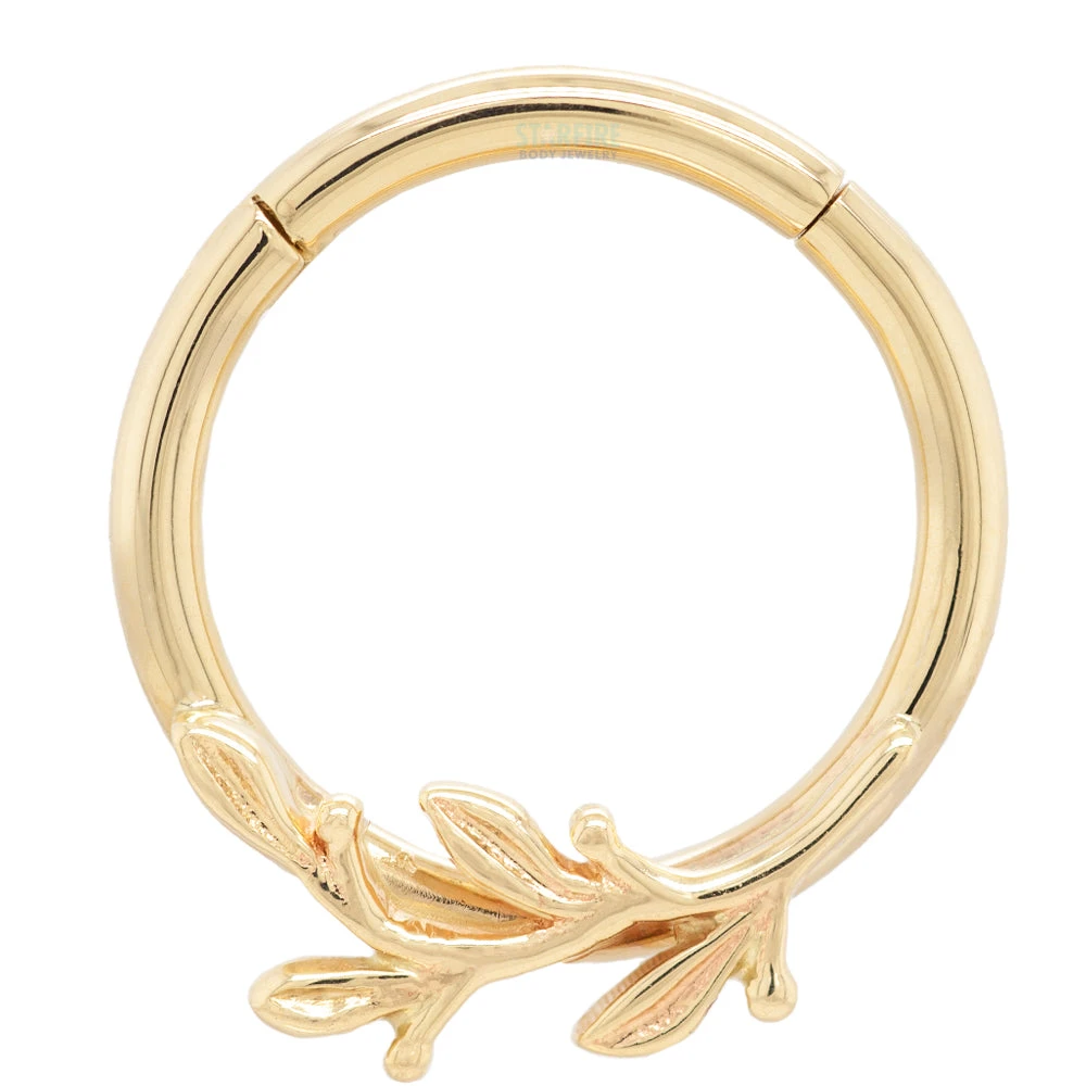 Love the “Amity” vine with little leaves but want to wear it in your septum or daith? Introducing the small “Amity” hinge ring.
