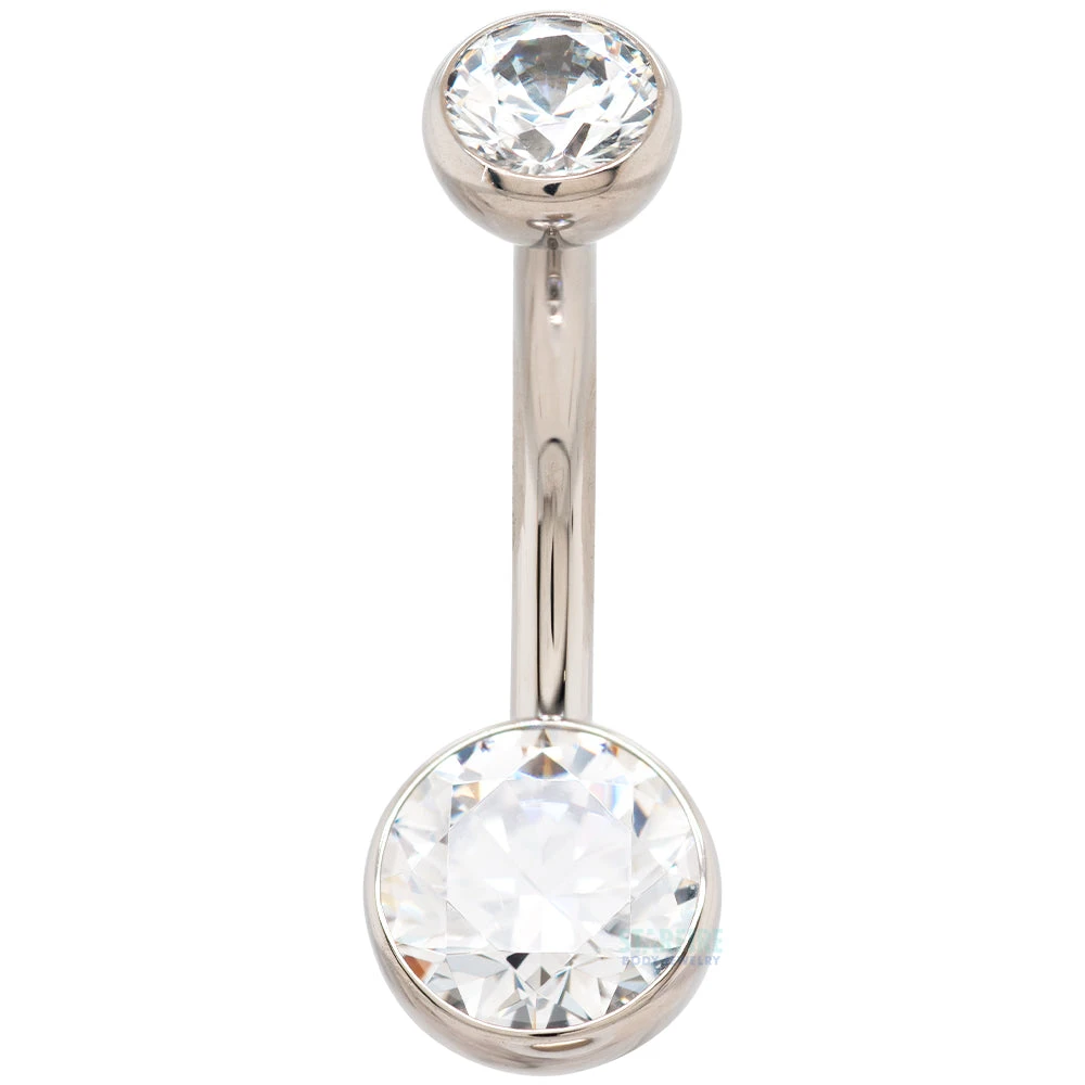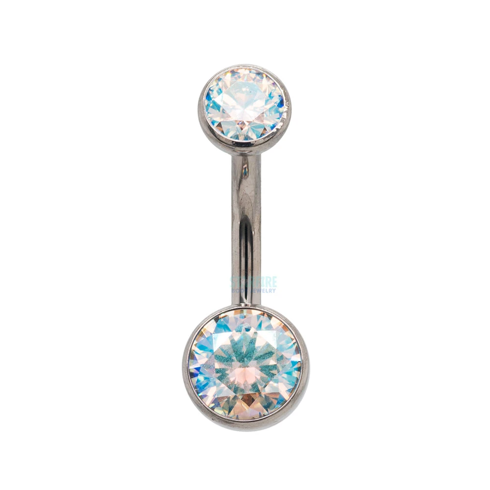 - Standard: 6mm fixed bottom Faceted Gem in Ball setting with matching 4mm Faceted Gem in Bezel threaded top