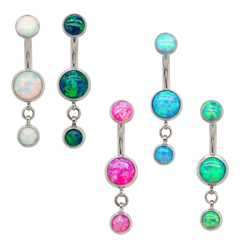 - 6mm fixed bottom Round Opal Cabochon with matching 4mm threaded top and (1) 4mm Round Opal Cabochon on a dangle
