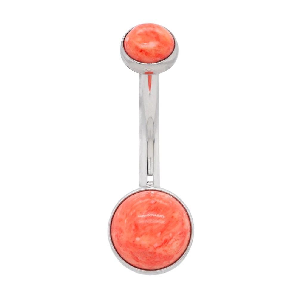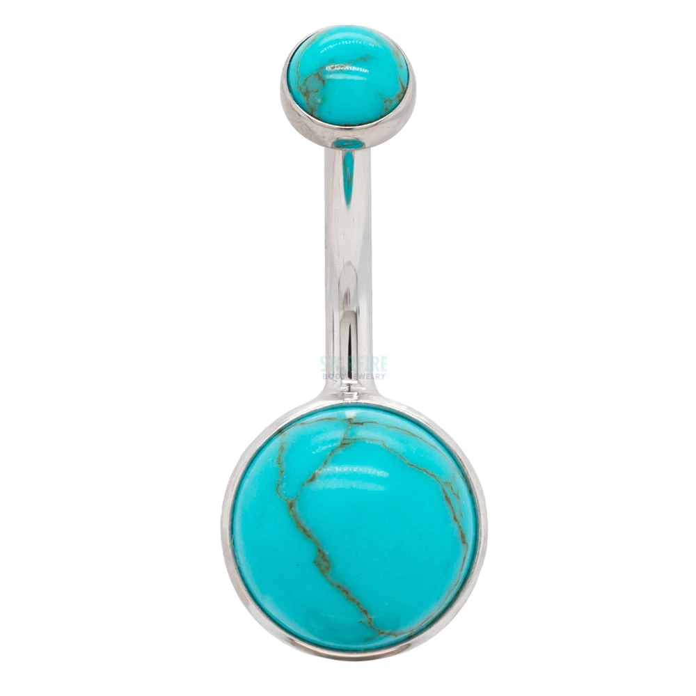 - Large: 8mm fixed Natural Stone Cabochon in Bezel bottom with (1) 4mm matching threaded top