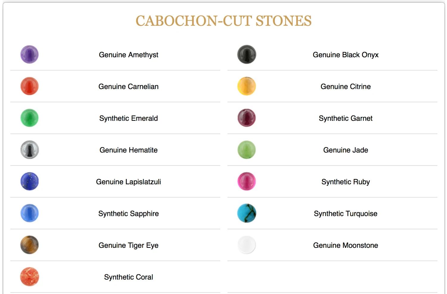 - Standard: 6mm fixed Natural Stone Cabochon in Bezel bottom with (1) 4mm matching threaded top