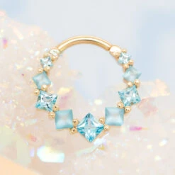 - Material(s): 14K Gold, London Blue Topaz, Genuine White Diamonds