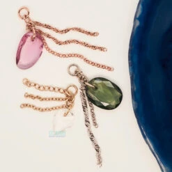 Pear “Leia” Chain Charm In Gold With Green Chalcedony & Diamonds