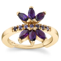 “Dionysus” Hinge Ring In Gold With Grey CZ’s & Oregon Sunstone