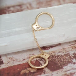 “Mikah” Hinge Ring / Clicker In Gold With Black Spinel & CZ’s