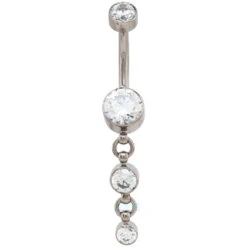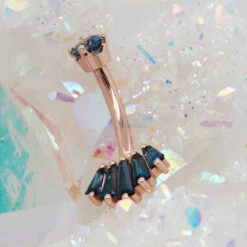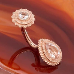 “Colombo” Navel Curve In Gold With Rainbow Moonstone & Amethyst