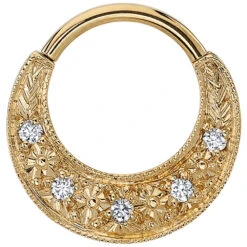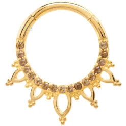 “Horizon 2” Hinge Ring In Gold With Peridot & Green Tourmaline With Sandblasted Bead Accents
