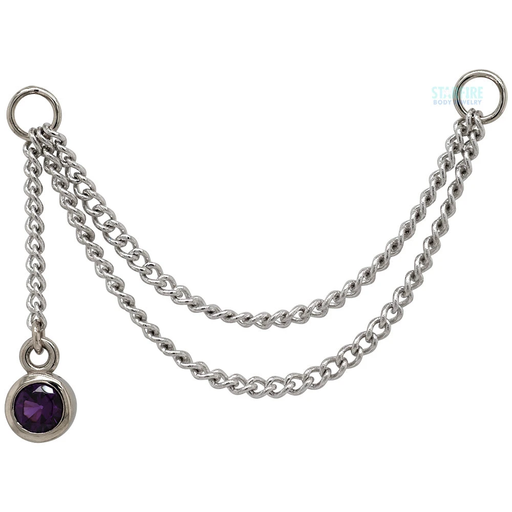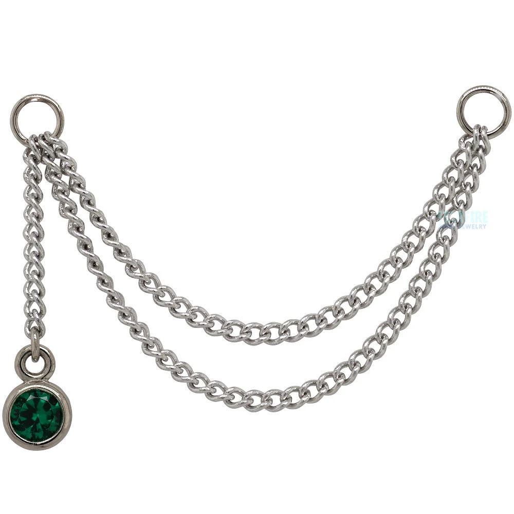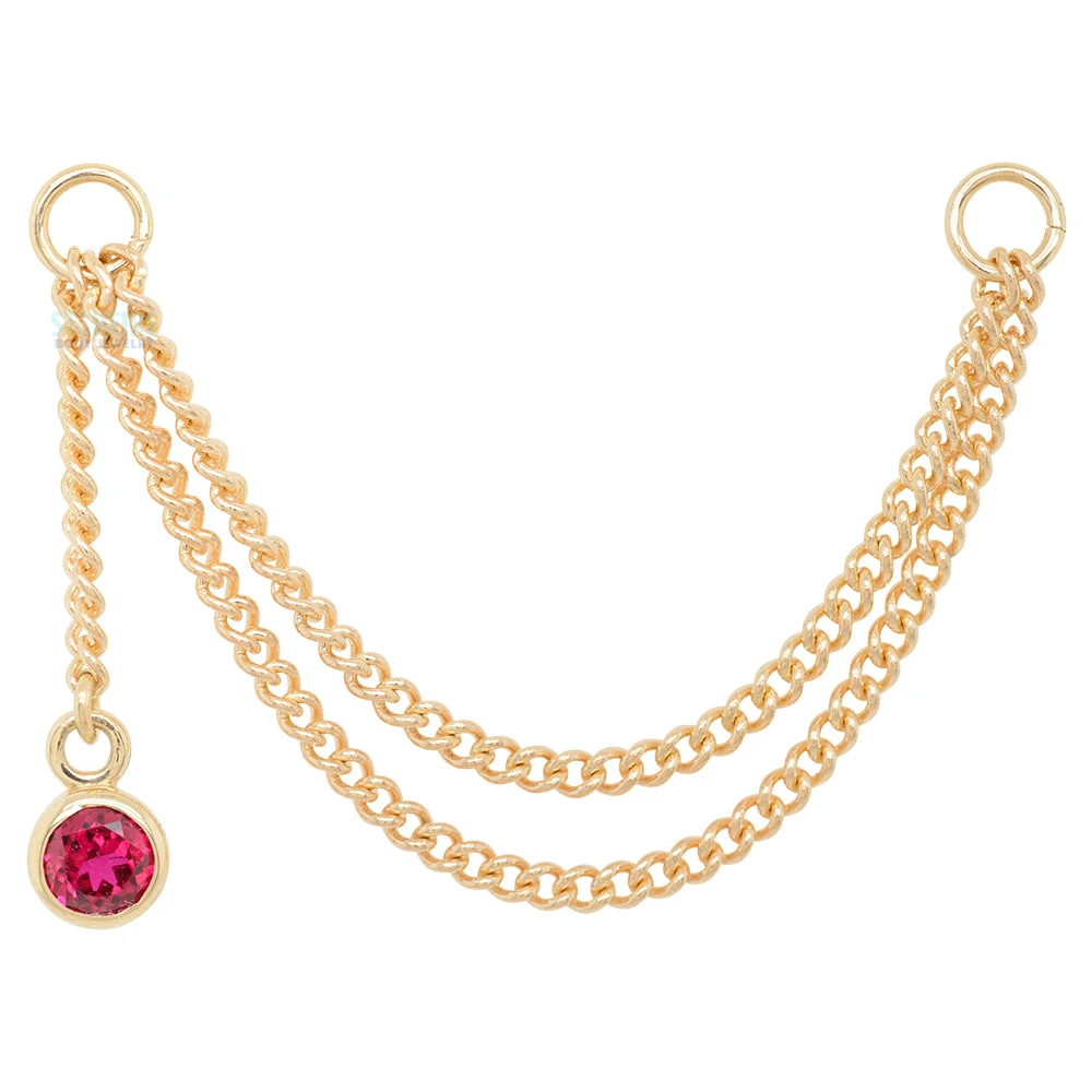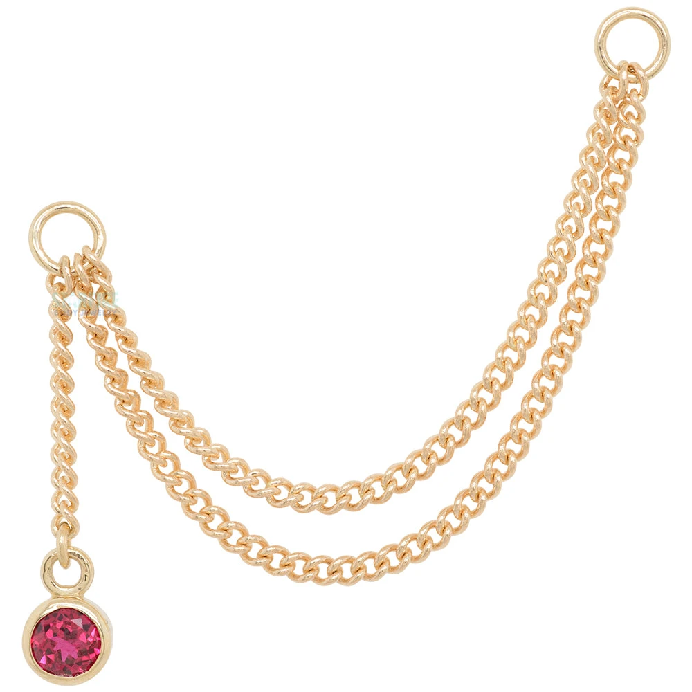 - Curb Chain with (1) 3mm Round Gemstone in Bezel
