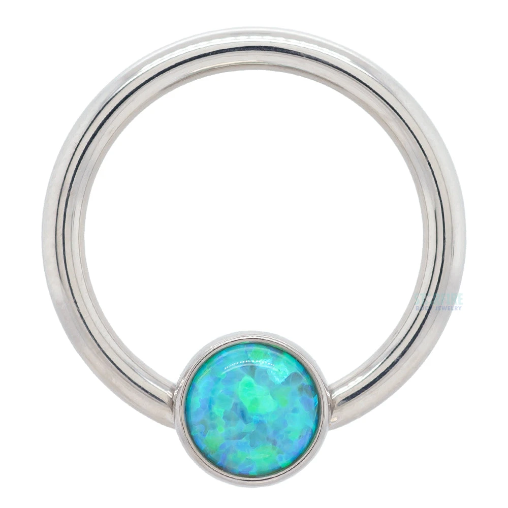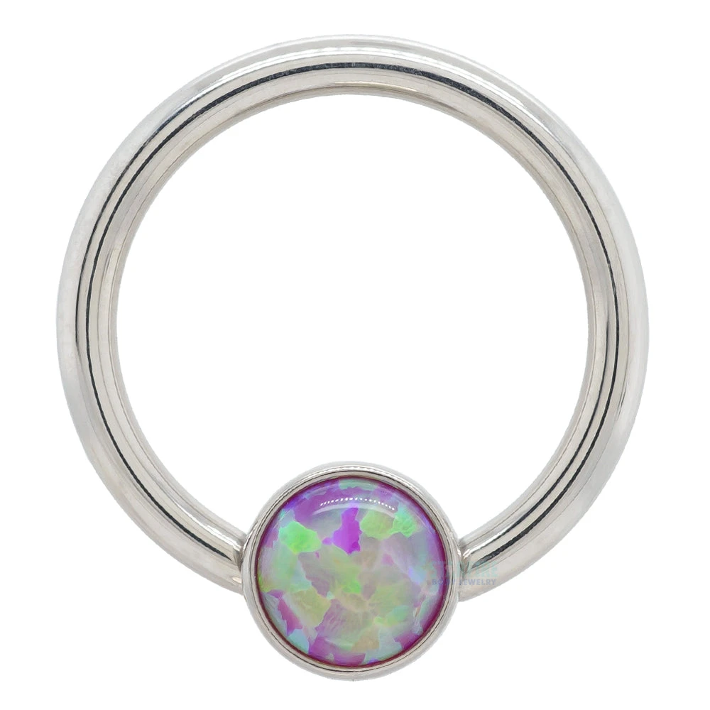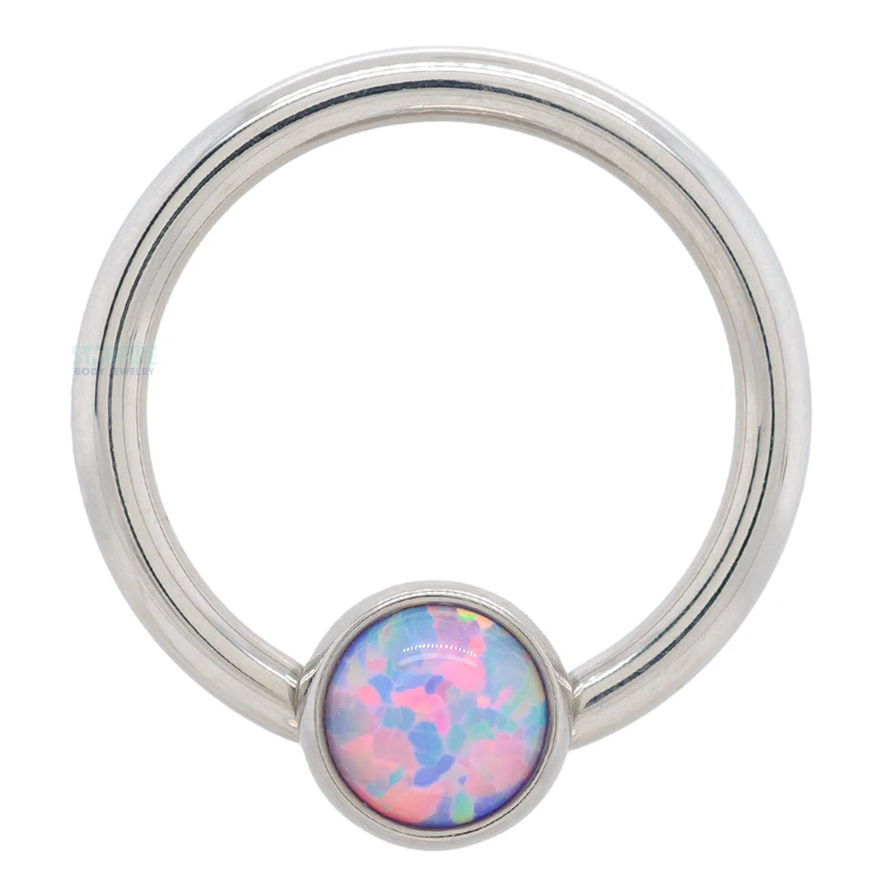 - 1/8″ captive bead with (1) Round Opal Cabochon in Bezel