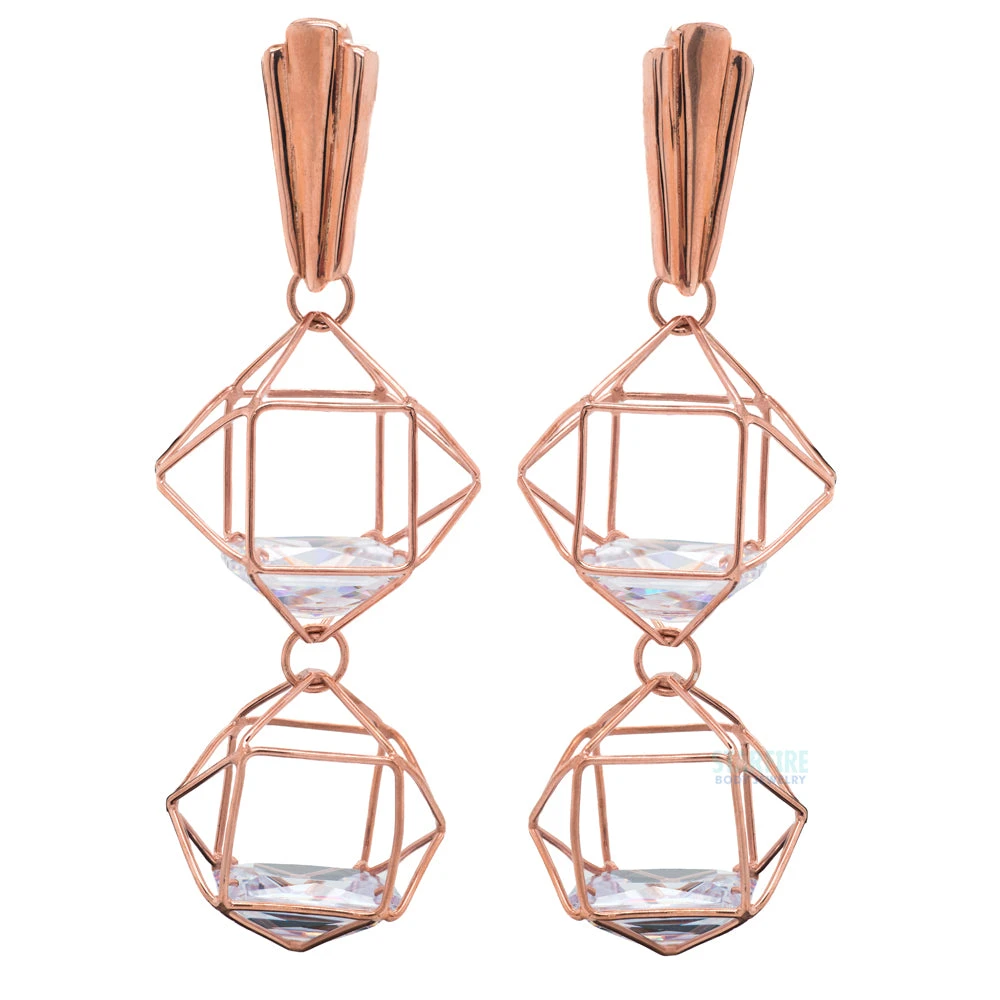 These “Chimera” weights have an open and refreshing design with emerald-cut brilliant gems at the bottom of each cage.
