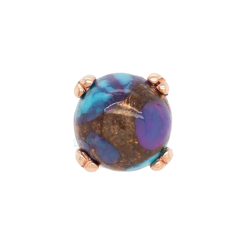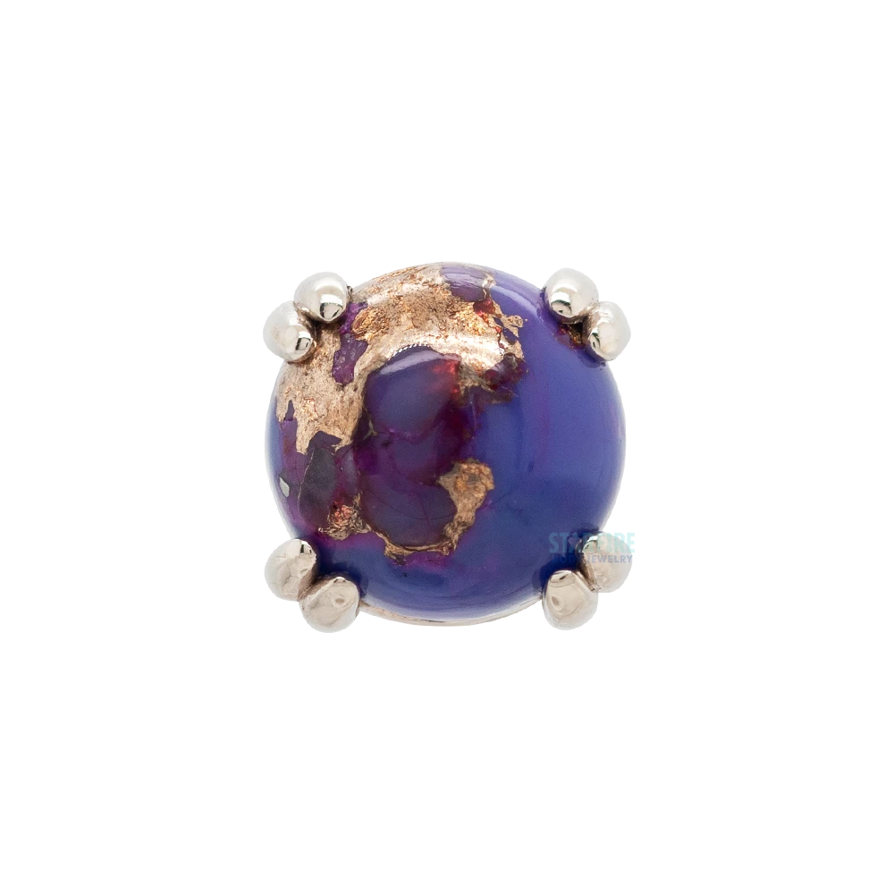 - threaded end with (1) 4mm Round Copper Purple Turquoise Cabochon in Prong’s