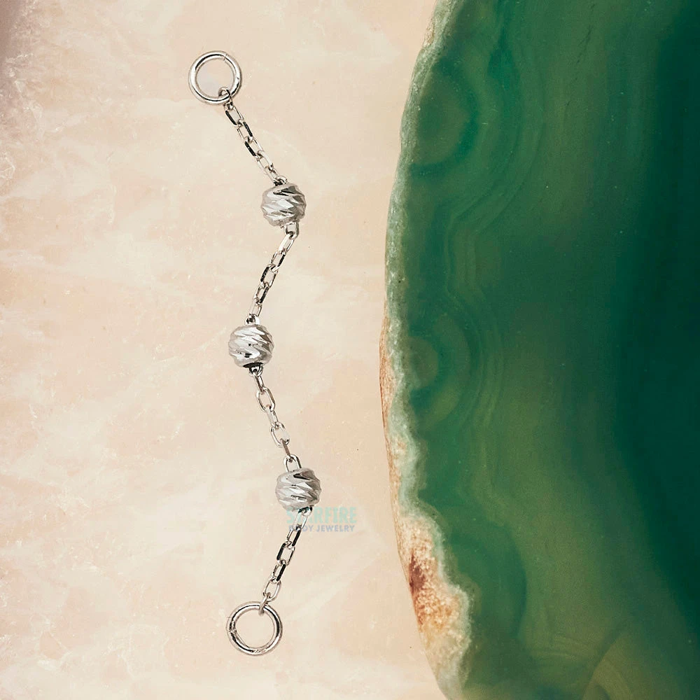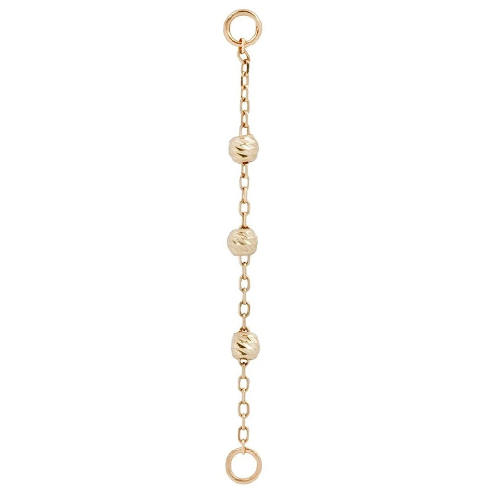 - Chain length is 1″ (25.5mm) with (3) 1.75mm textured gold beads