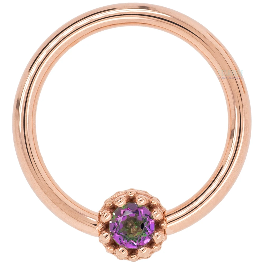 - 5mm crown prong with (1) 3mm Round Mystic Topaz