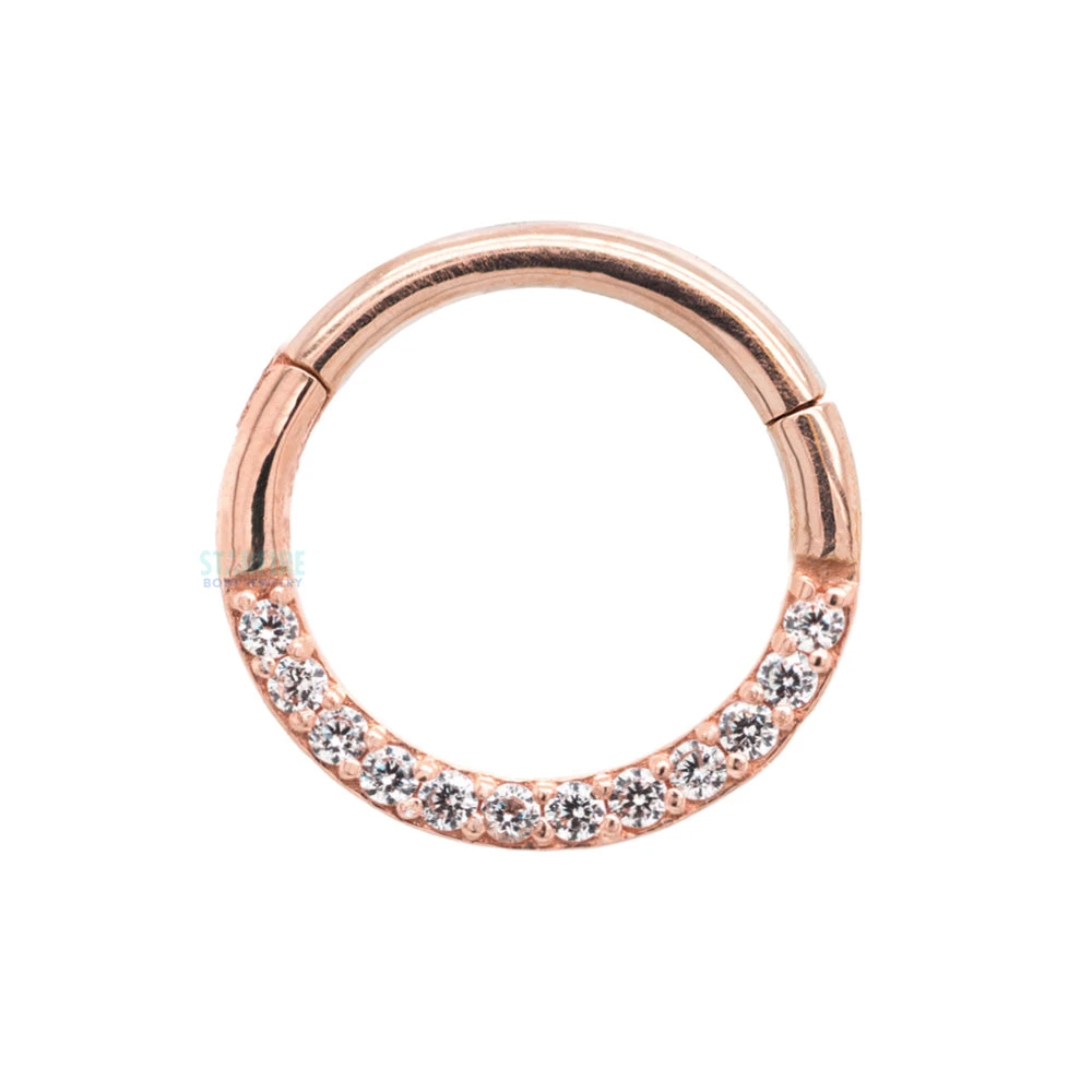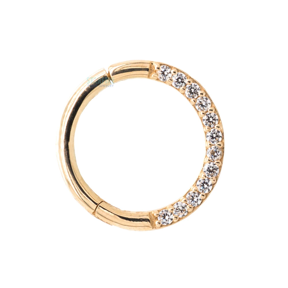 The “Dia” hinged ring has a single row of forward facing gems. Classy but not over the top, just the right amount of bling!