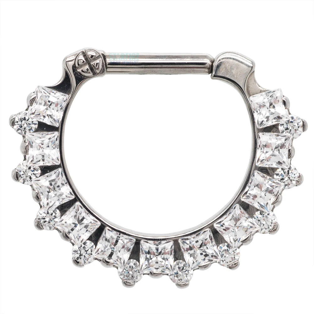 - 3/8″: (11) 2mm Princess-Cut CZ’s with (10) 1.5mm Round CZ’s in Prong’s