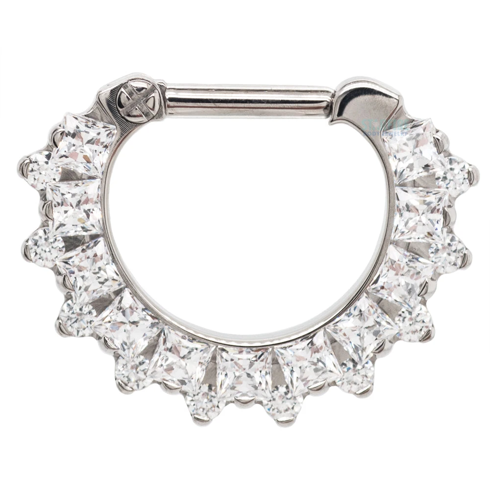 - 1/4″: (9) 2mm Princess-Cut CZ’s with (8) 1.5mm Round CZ’s in Prong’s