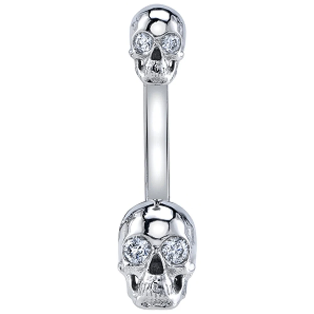 Rock on and unleash your inner rebel with this navel curve featuring gem-eyed skulls!