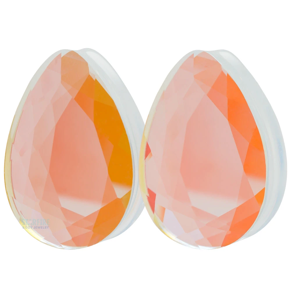 Refract light like a boss in these Faceted Teardrop Glass Plugs! Meant to mimic the shimmering light of Aurora Borealis.