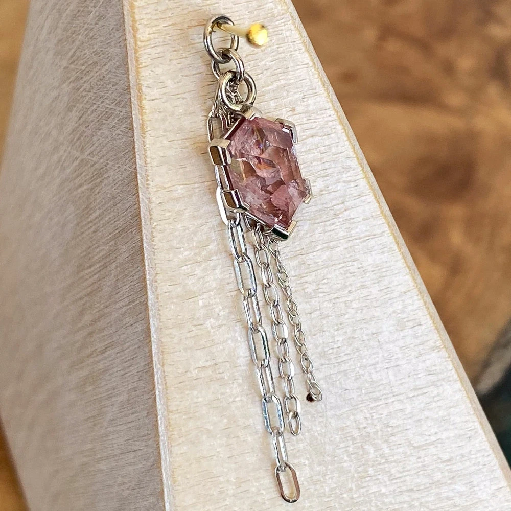 - 28mm total length with (1) 9.2mm x 5.8mm Geometric Cut Pink Spinel with (3) mixed chains