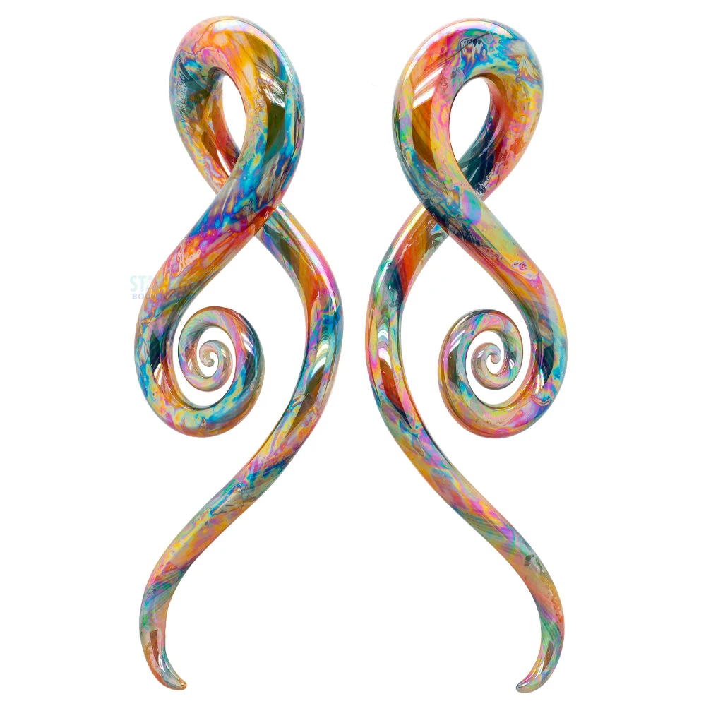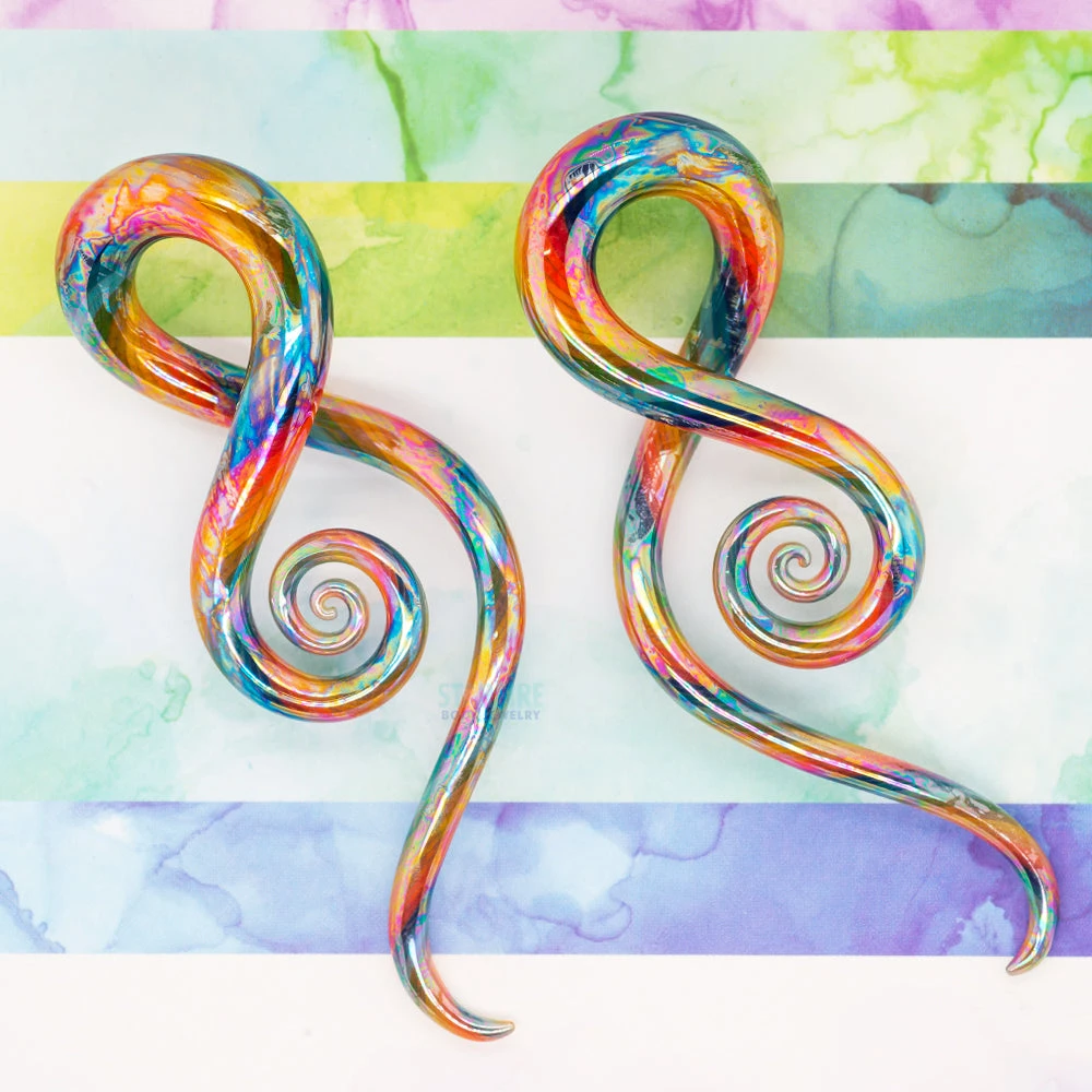 If you’re looking to stretch your earlobes, consider these popular Glass Squids that are now offered in a rare, limited edition Twisted Rainbow style. They feature an oil slick finish that will produce an iridescent sheen that will make the spectrum of colors stand out even more.