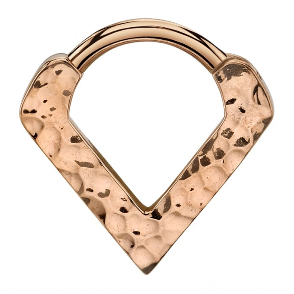 Beautifully crafted V-Shaped hinge ring, features a hammered finish for added texture and sophistication.