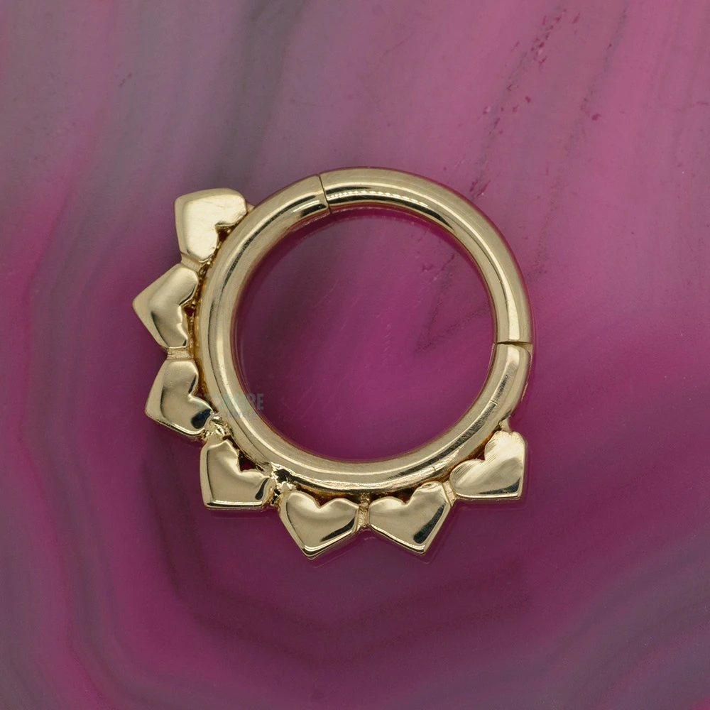 A hinged ring with heart accents lay flat in your daith piercing or…