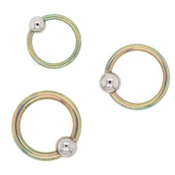 A great basic available in Opalescent Niobium with a stainless bead, perfect for a variety of piercings.