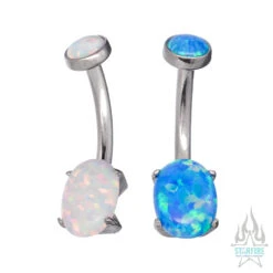 - (1) 8mm x 6mm fixed bottom Oval-Cut Opal Cabochon in Prong’s with (1) 4mm Round Opal Cabochon in Bezel threaded top