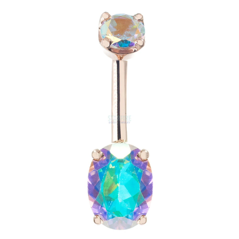 - 8mm x 6mm fixed bottom Oval Mercury Mist Topaz in Four Prong Basket Setting with matching 4mm Round Mercury Mist Topaz in Prong’s threaded top