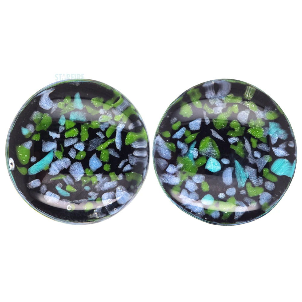 Clear glass with the look of decorative pebbles in the base give these Purple/Green plugs a truly unique look.