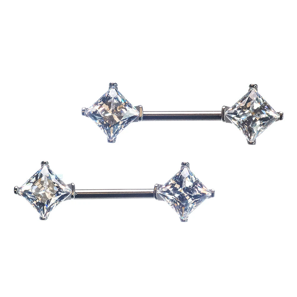 - Side-set prong-set 6mm Square Princess Star Cut Faceted Gems