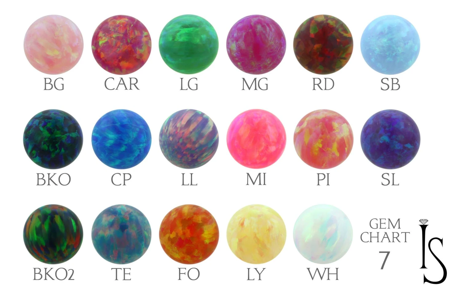 - 6mm fixed bottom Opal Ball with matching 4mm threaded top