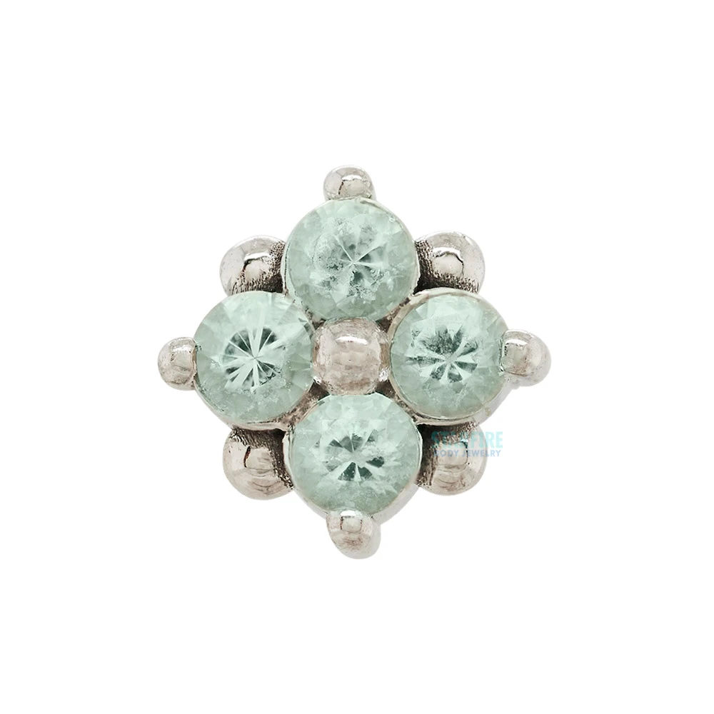 - 5.5mm threaded end with (4) 2mm Round Mint Beryl in Prong’s with tiny bead accents