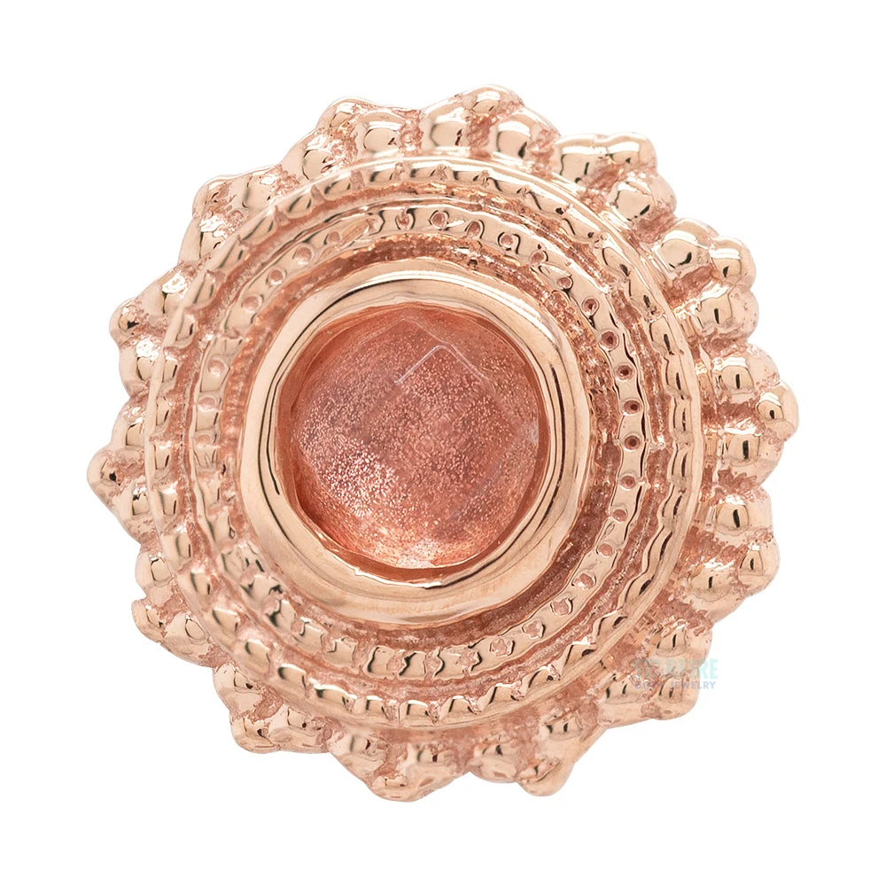 - 8mm threaded end with (1) 3mm Round Rose Cut Oregon Sunstone in Bezel