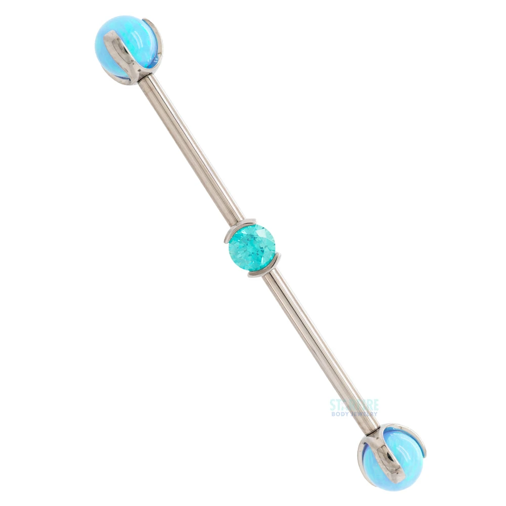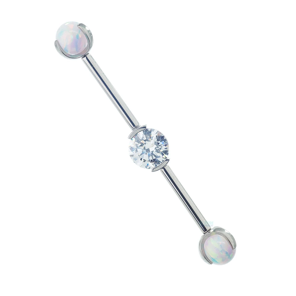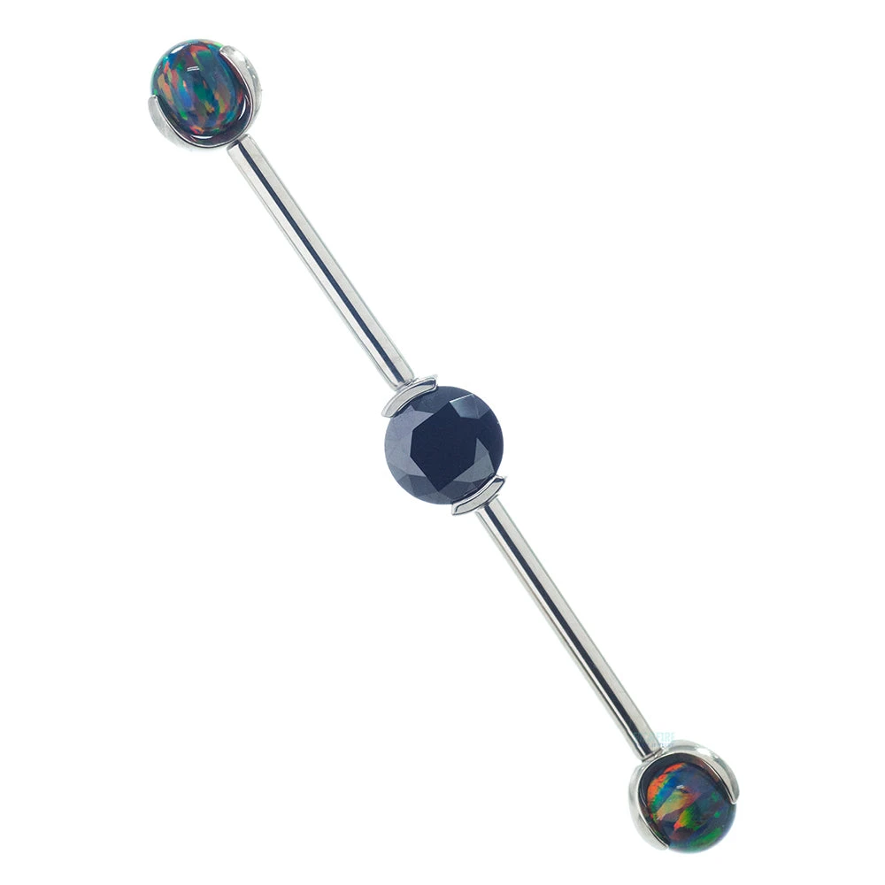 Opal ends and a sparkling CZ center makes this industrial barbell a great option if your looking for something with a little more razzle-dazzle!