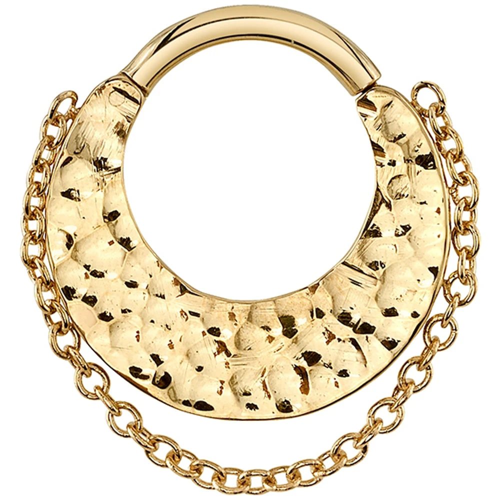 For a hinge ring that packs a punch without any gems, the “Sea” is a flawless pick! The hammered shield and drape of the cable chain are simply stunning.