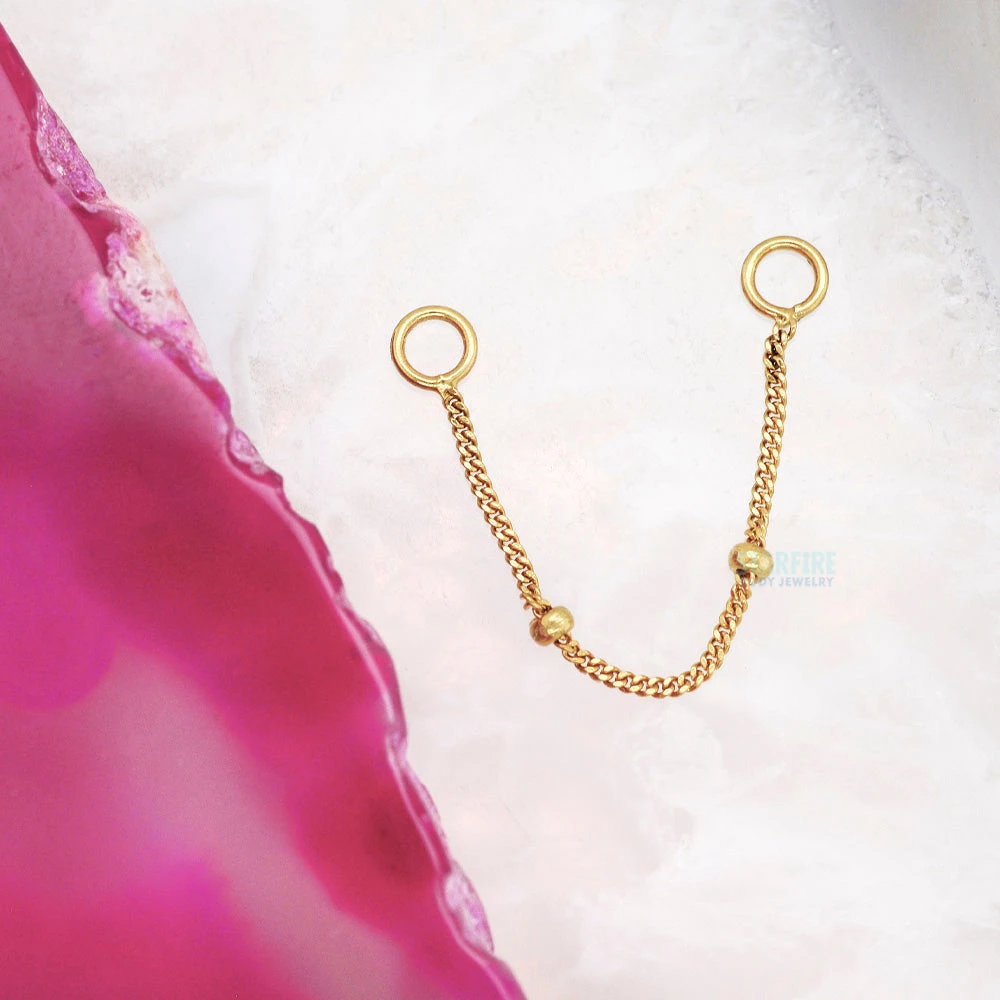 Get out of this world and into the cosmos with the “Space Dust”. This chain attachment features (a) gold bead(s) on a delicate swooping chain! ✨