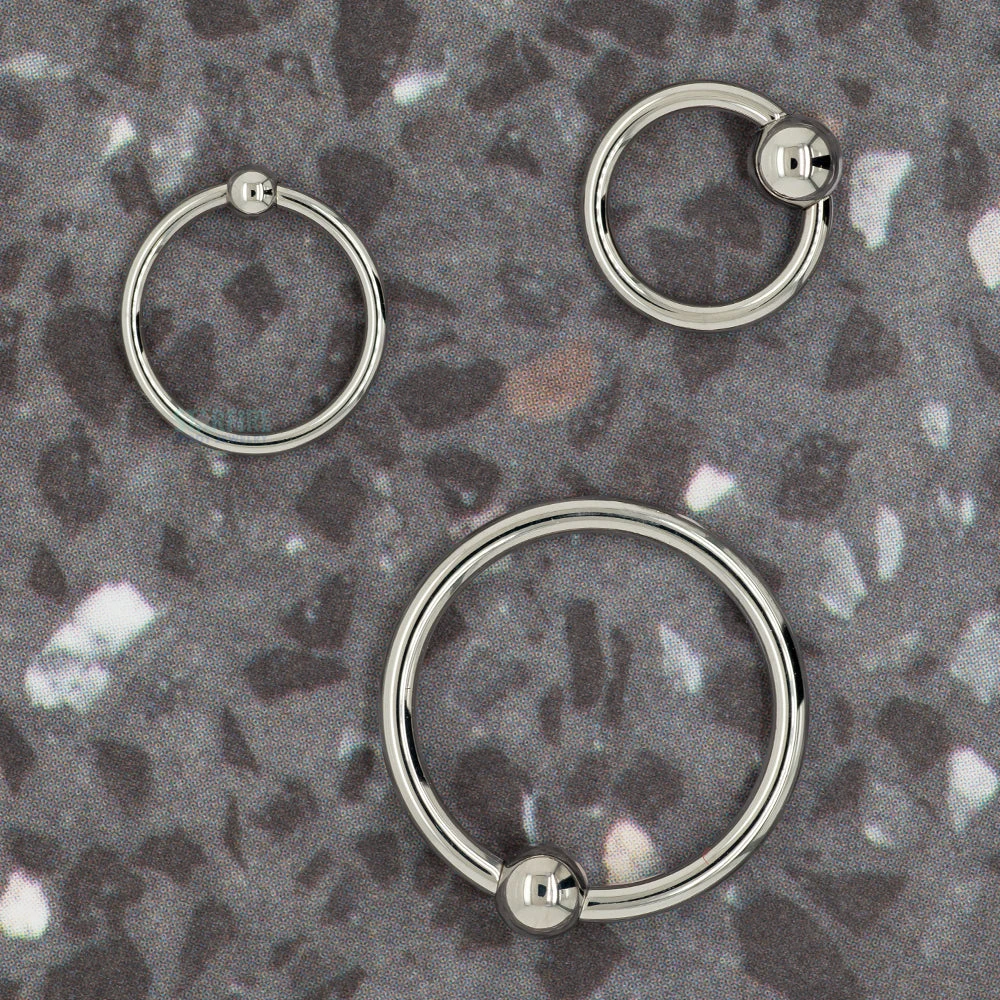A great, basic stainless steel ring with a matching ball, perfect for a variety of piercings.