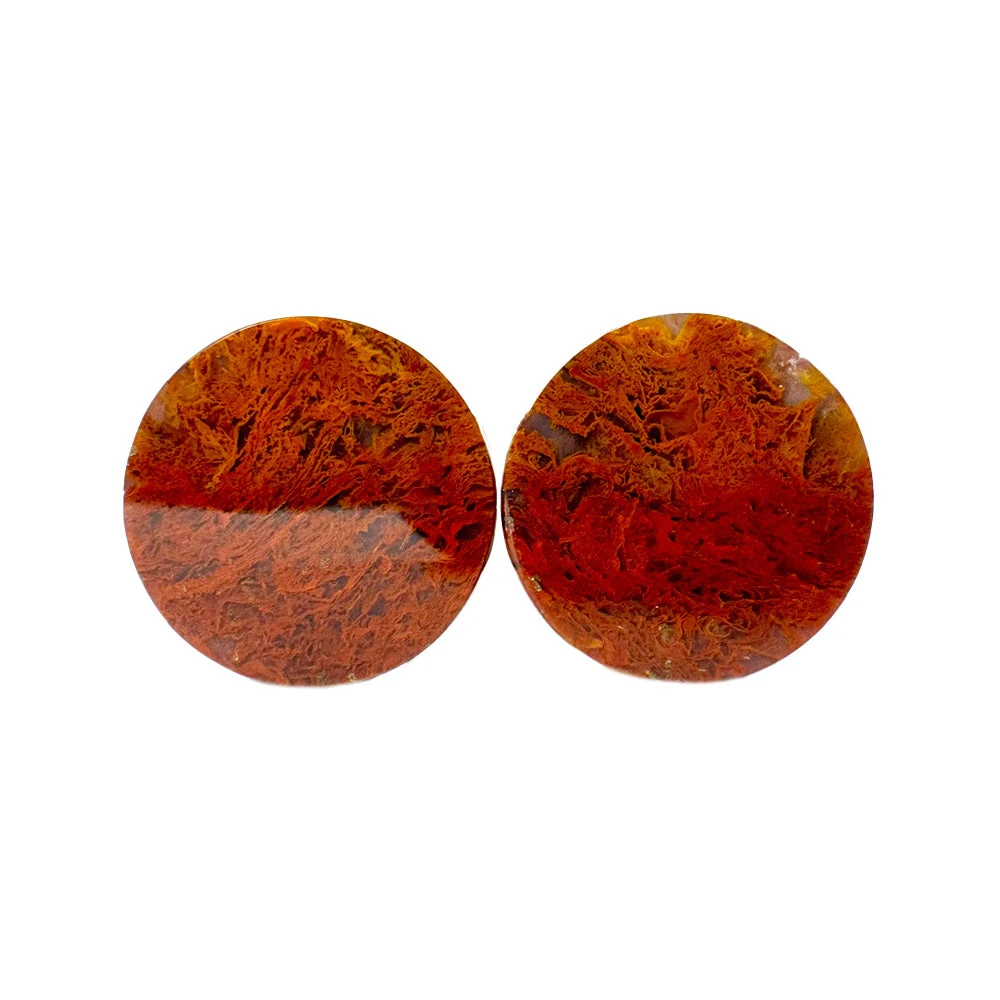 A fun addition for your stretched lobe collection in Red Moss Agate. This stone is said to be associated with the heart chakra. This fiery Red Moss Agate can range between bright reds, oranges and yellow tones.