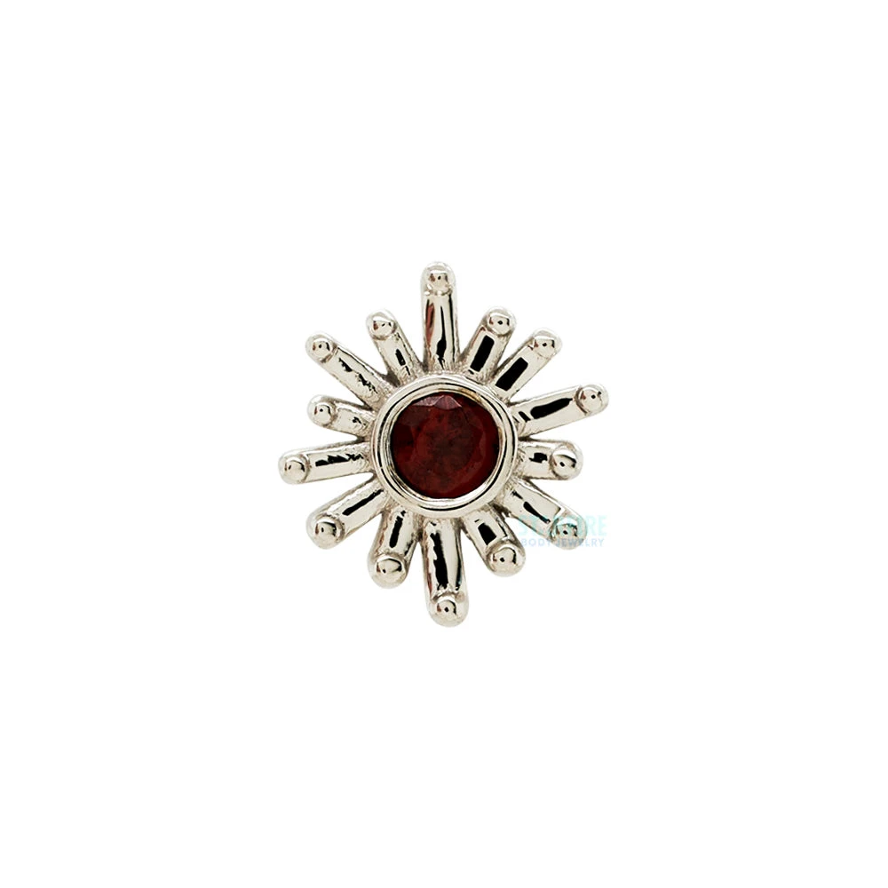 - 4mm threaded end with (1) 1.5mm Round Garnet AA in Bezel