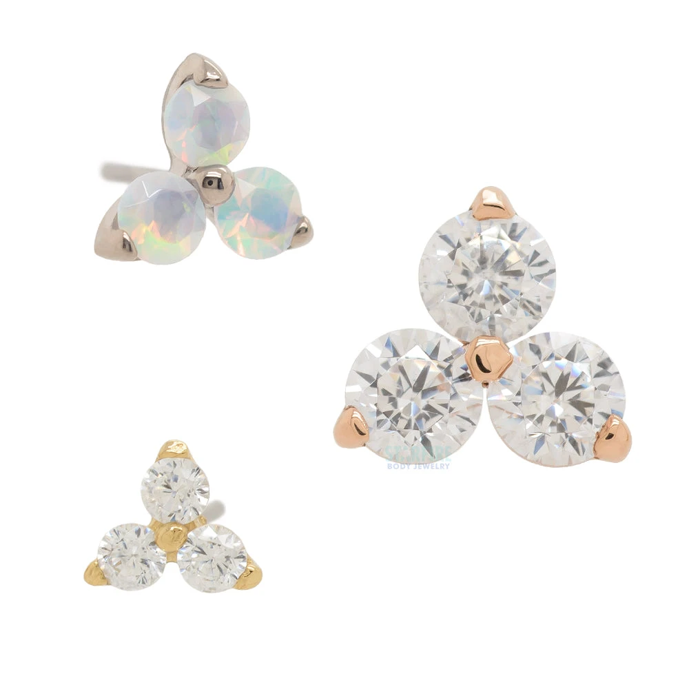 - threadless end with (3) 1.25mm Brilliant-Cut Round Faceted Gemstones in Prong’s