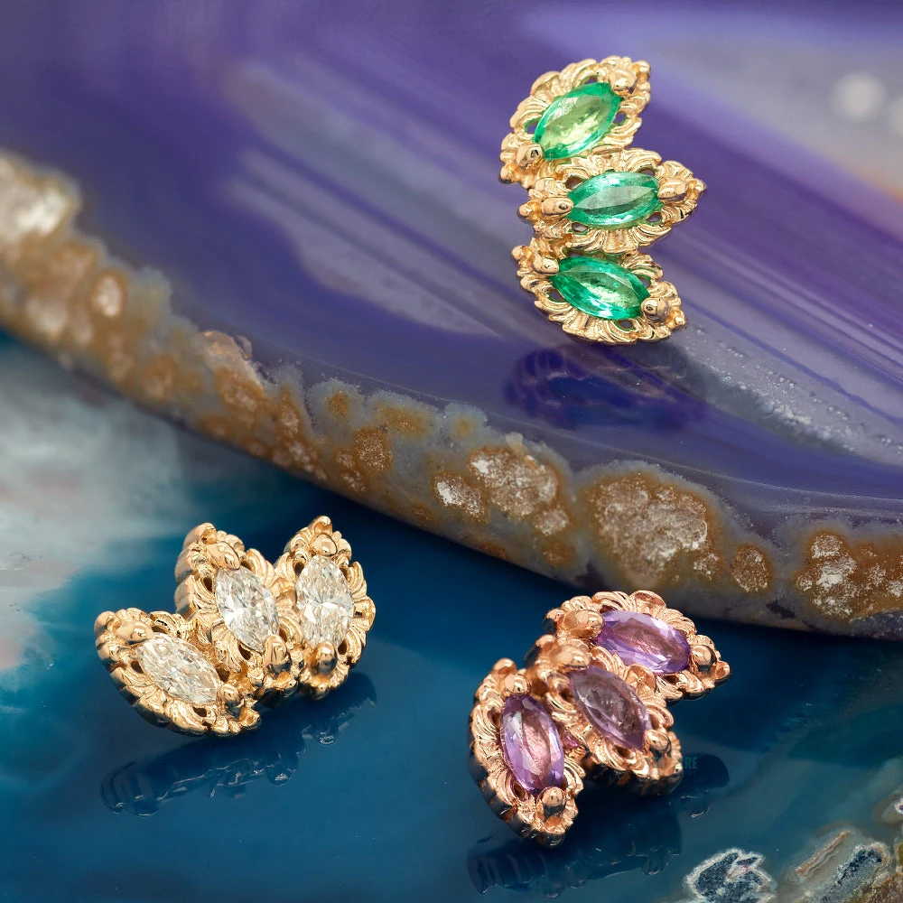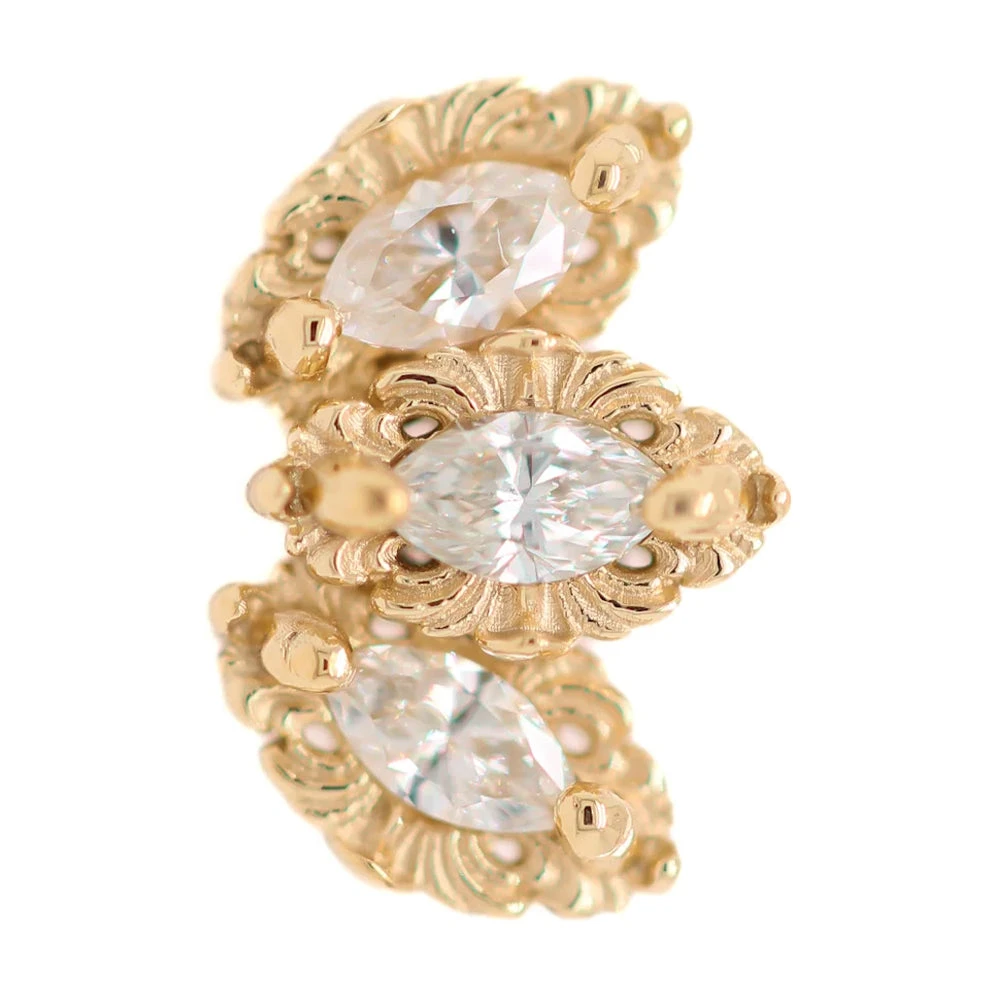 - 8.3mm x 5.8mm threadless end with (3) 3mm x 2mm Marquise-Cut White Diamonds in Prongs